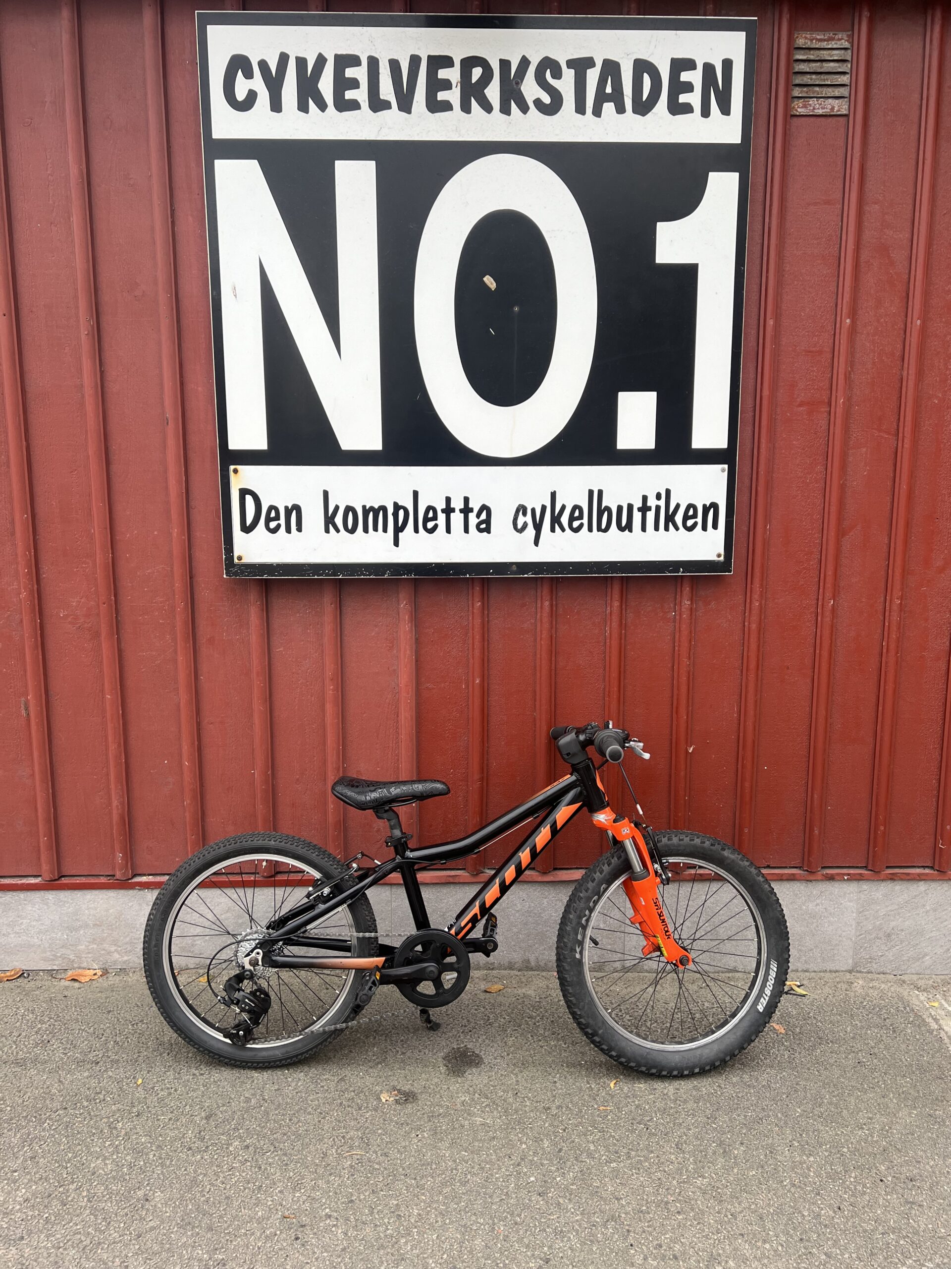 Nyservad scott barncykel, 7 växlar, handbromsar bak och fram, ny kedja och kasette samt nya handtag